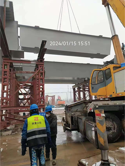 陜西重型機(jī)械制造有限公司承擔(dān)的航站樓出場道路高架橋項(xiàng)目中的400多塊鋼箱梁,其中50%以上的鋼箱梁為新式疊合梁,該疊合梁的結(jié)構(gòu)復(fù)雜程度和單件重量以及多變的外形,為陜重公司的首次加工和安裝,技術(shù)難度大。該項(xiàng)目的參建,對陜重公司鋼結(jié)構(gòu)橋梁的制作和安裝具有劃時(shí)代意義。